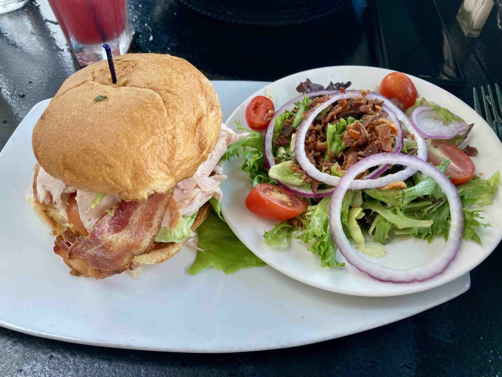 As stated above I got the California Turkey Club and a Miller side salad. Both were delicious! I also got the blue lemonade cocktail (made from rum, blackberry puree, lemon juice, and more). It was perfect!